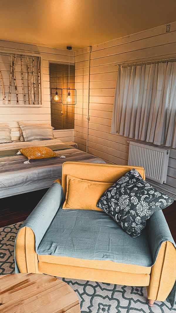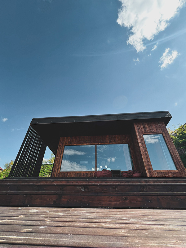 Первый домик мы построили в 2018 году. Сейчас у нас уже 6 домиков с уникальным дизайном, каждый мы придумали сами. И более 3000 довольных гостей. С первого домика и по сей день мы остаемся небольшим семейным делом и очень бережем место, которое нам досталось.